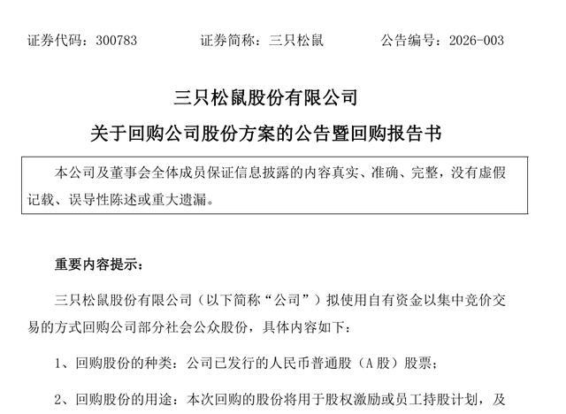 3月24日,三只松鼠发布对于回购公司股份有贪图的公告,拟使用自有资金以聚会竞价形状回购公司部分社会公众股份。