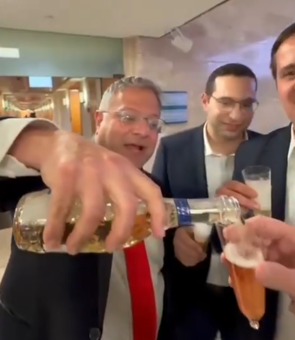 现场视频炫耀,以色各国度安沿途长本-格维尔(Itamar Ben Gvir)径直将一瓶香槟带入以色列议会大厅庆祝,公然宣称“很快咱们就会一个一个地算帐他们”。