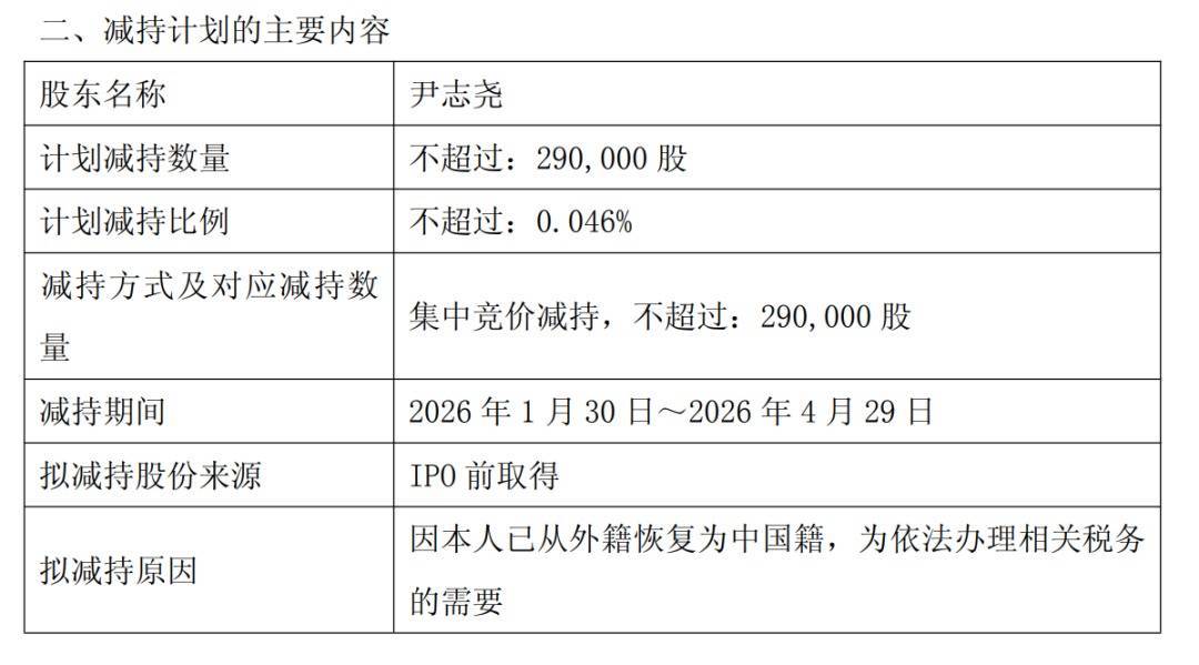 另外,被誉为“中国刻蚀机之父”的中微公司独创东说念主、董事长、总司理尹志尧目的自公告露馅之日起15个交游日后的3个月内,通过聚拢竞价神气减执公司股份不最初29万股,占公司总股本比例不最初0.046%。拟减执原因为:“因本东说念主已从外籍收复为中国籍,为照章办理关系税务的需要。”